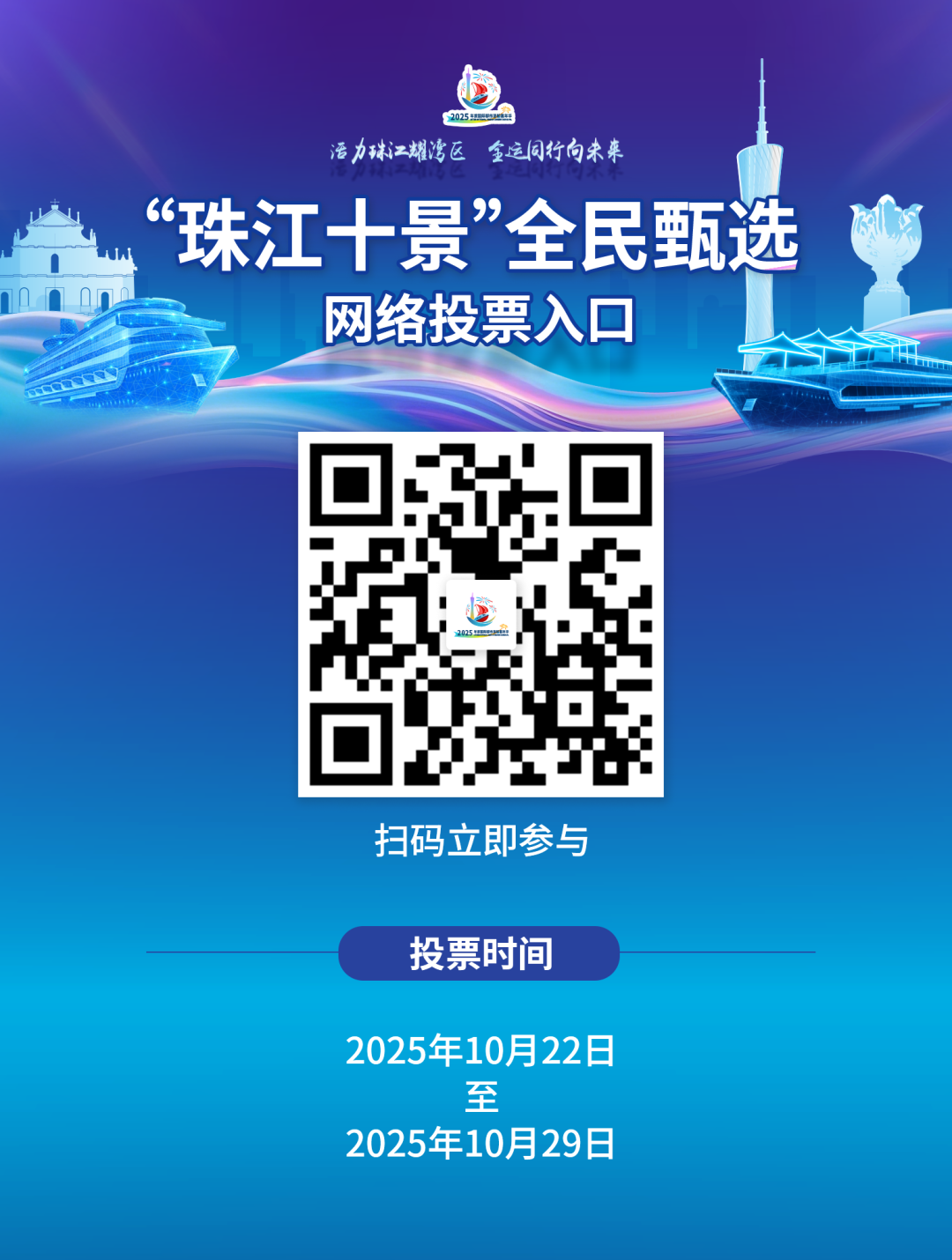 为贯彻落实《广州市打造“世界级水岸观光旅游目的地”工作方案》,让更多人发现 “珠江上的广州之美”,助力2025国际都市游船嘉年华,我们从珠江游十五景中精选候选名录,正式开启“珠江十景”全民投票活动!本次活动由广州市港务局主办,广州市城市建设投资集团有限公司承办,集团下属广州市乾和文化公司执行。这一次,咱们用“江上视角”选风景,让你爱的江景成为广州新名片!