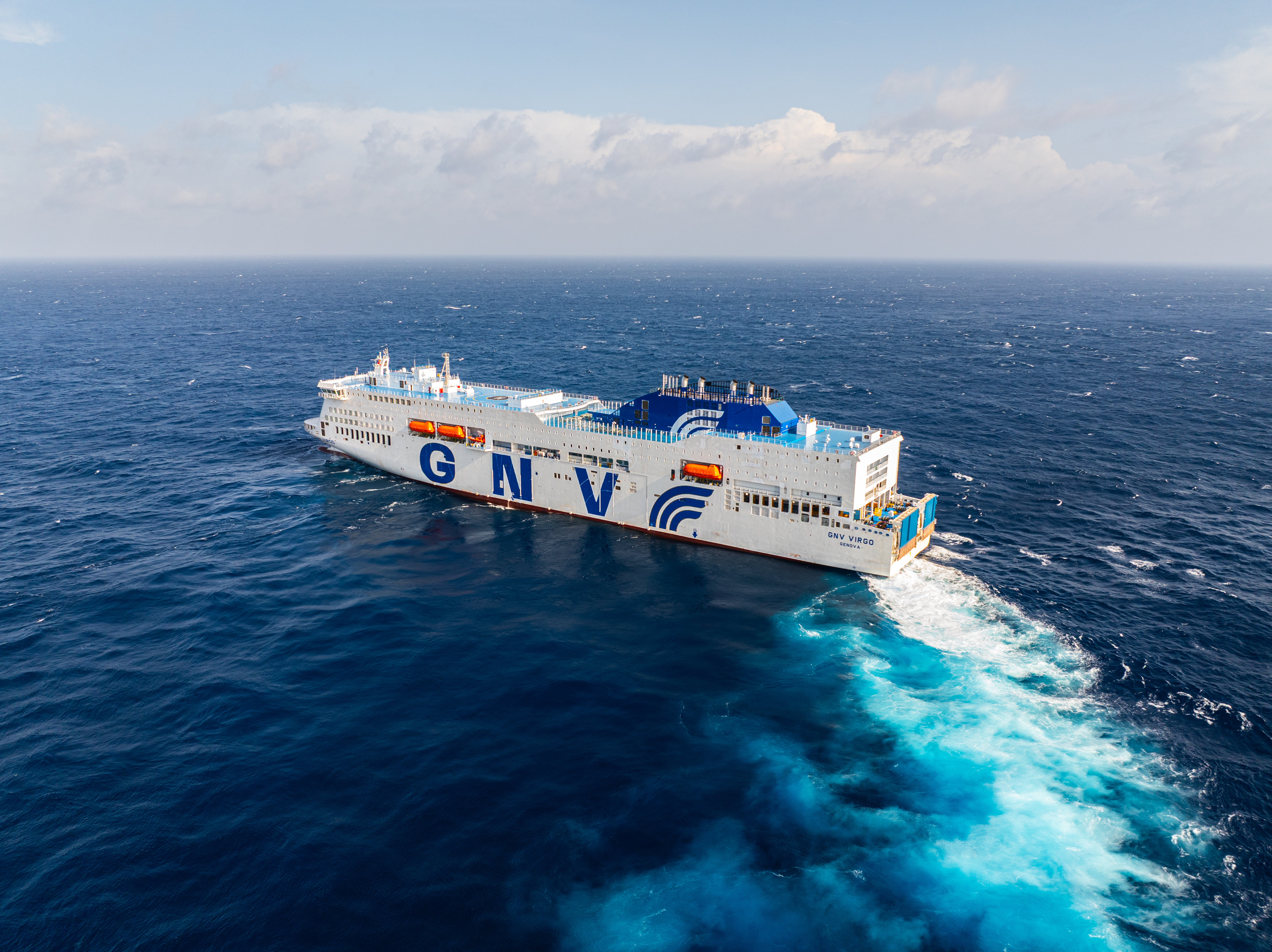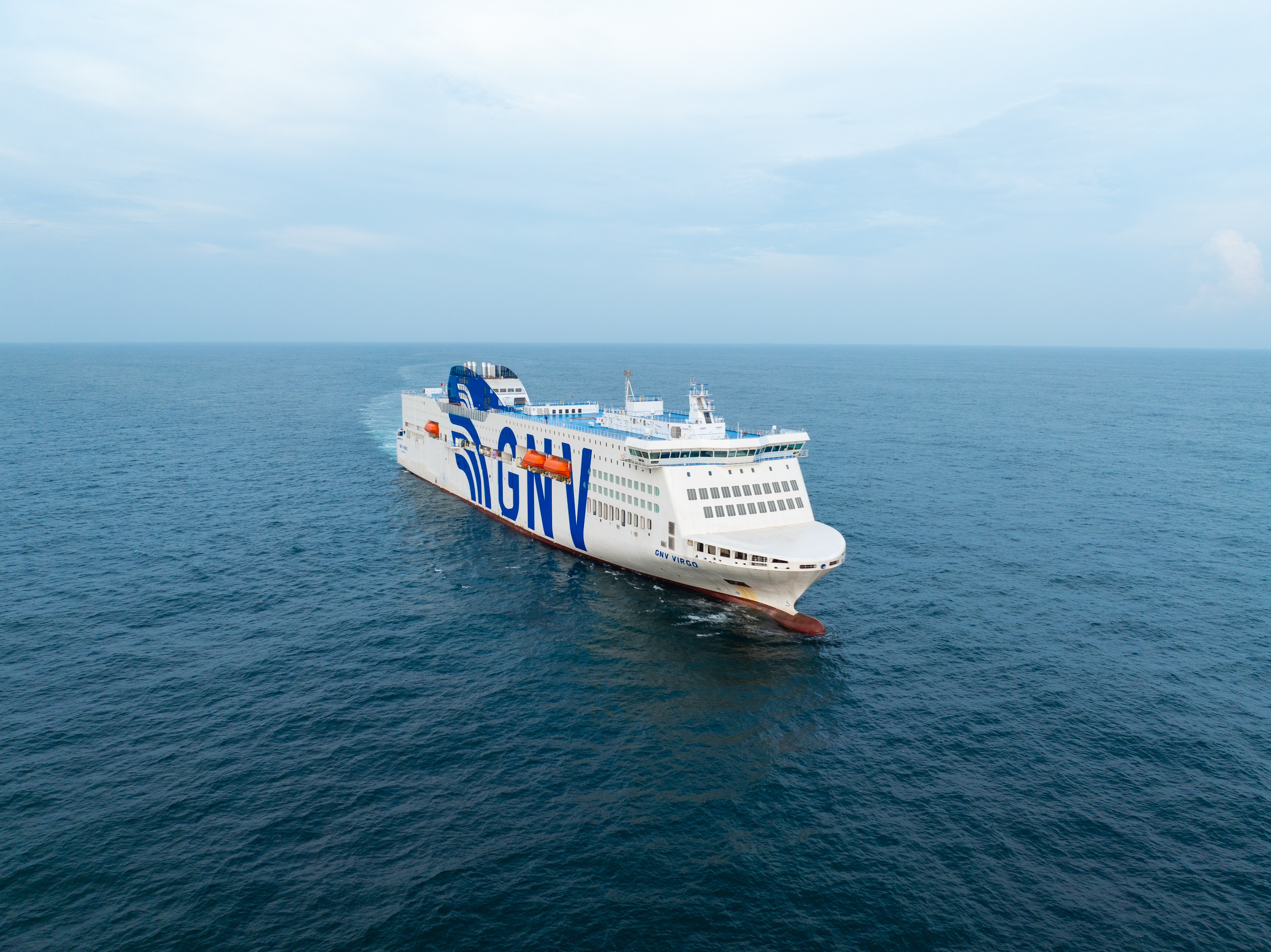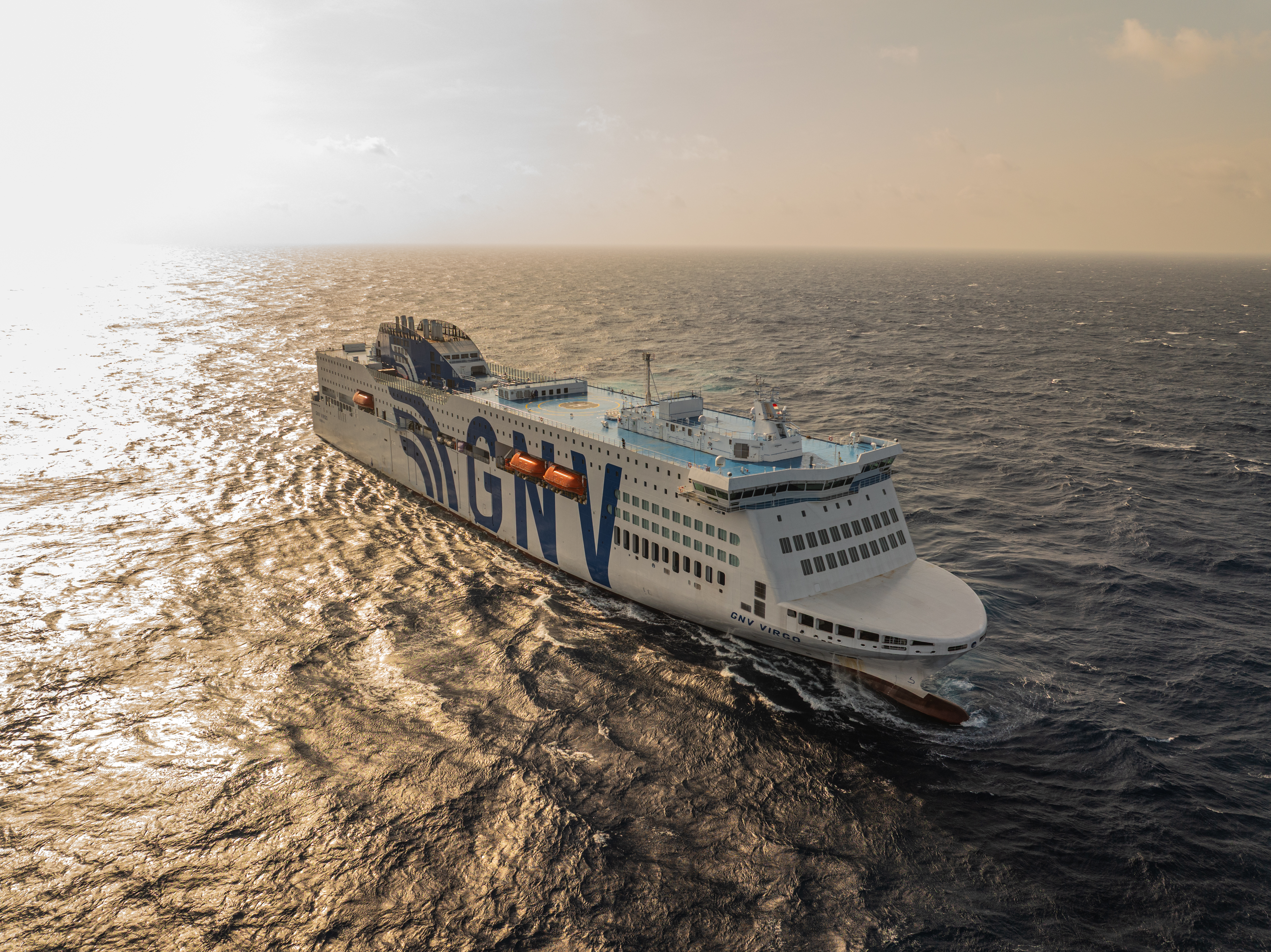 广船国际与地中海航运集团(MSC)旗下客渡轮运营商Grandi Navi Veloci(GNV)共签订了同系列4艘豪华客滚船建造订单,其中首制船“GNV POLARIS(GNV·北极星)”号已于2024年10月交付运营,2号船“GNV·猎户座”号于2025年4月交付运营,“GNV·VIRGO(GNV·室女座)”号是该系列船的第3艘,也是广船国际首艘自主研发设计的双燃料客滚船。这艘船在前两艘船的基础上再次进行了优化升级,客舱数量从1号船的298间增至485间,载客量从1500客位提升至1800客位。与此同时,“GNV·VIRGO(GNV·室女座)”号在船型不变的情况下,还进行了LNG双燃料推进系统升级,使该船更加节能环保。