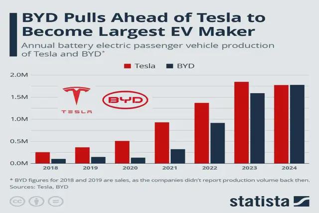 与此形成鲜明对比的,是中国新能源车企的强势表现。比亚迪连续第四季度在全球纯电动车销量上力压特斯拉,第三季度纯电车型销量达582,522辆,领先特斯拉85,423辆。而在全球市场份额方面,比亚迪已连续三个季度成为全球电动汽车销量冠军,2025年第二季度市场份额达到22%,销量超过85万辆,同比增长159。